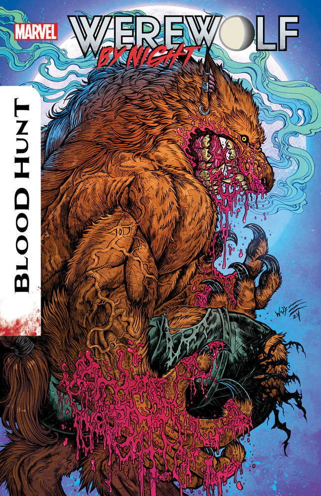 As the BLOOD HUNT wreaks untold havoc across the Marvel Universe, one of those affected in most unexpected ways is the WEREWOLF BY NIGHT! Imbued with NEW ABILITIES, a NEW LOOK, and a DANGEROUS NEW DIRECTION, this Werewolf by Night is UNLIKE ANY YOU HAVE SEEN OR KNOWN BEFORE! Starring JAKE GOMEZ, this is one tie-in no BLOOD HUNT reading order is complete without!