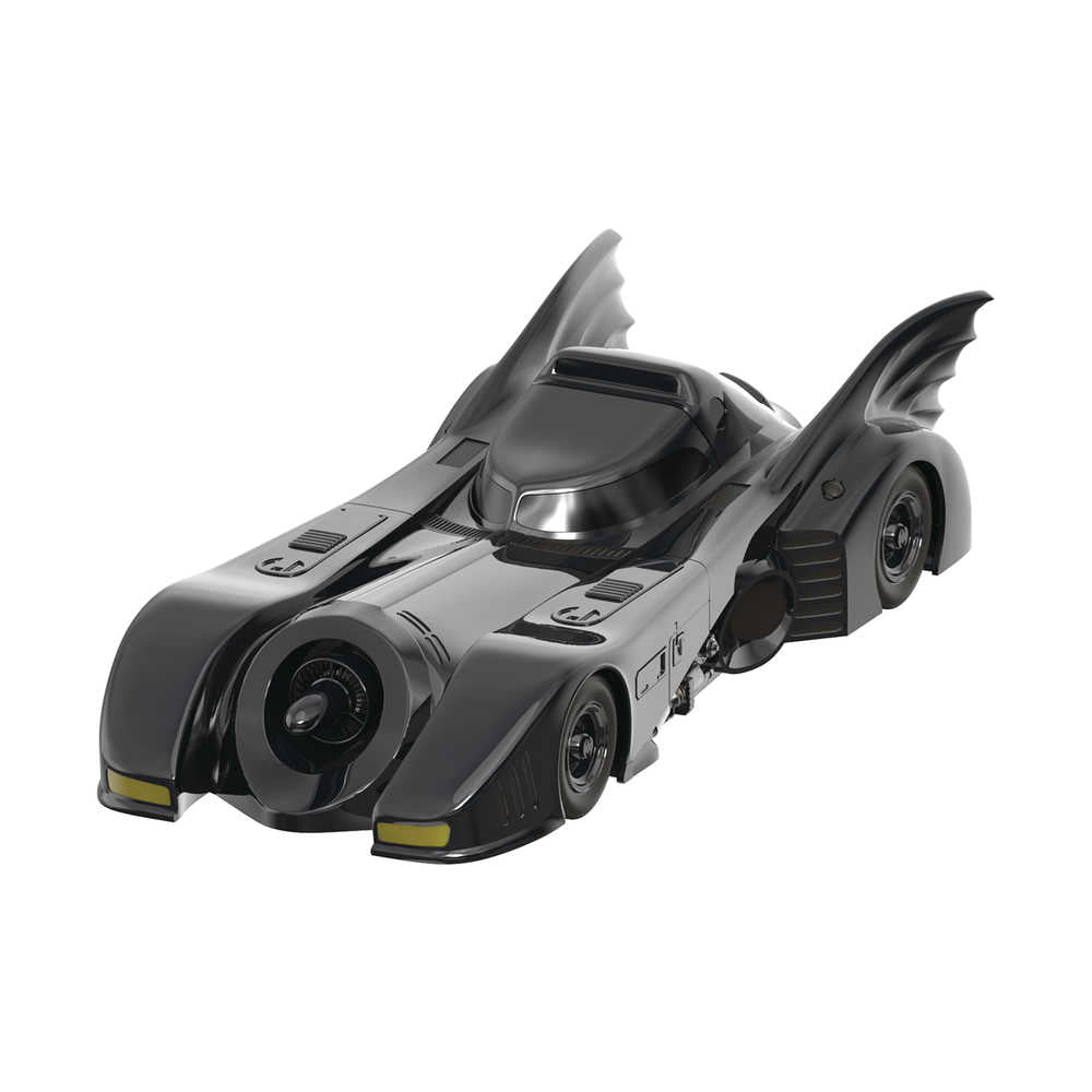 From Super7. Batman utilizes an arsenal of high-tech gadgets and vehicles in his fight to protect Gotham City, and none are more iconic than the Batmobile! Appearing in every iteration of Batman and evolving with the character over time, Super7 is proud to present the Batman (1989) Batmobile Super Cyborg! Measuring over 13" long and 5" wide, this Batmobile is inspired by its appearance in the 1989 Batman film and is bursting with movie-accurate sculpt details and metallic paint accents. The formidable exterior of the vehicle features a spinning turbine fan, rolling wheels, and an array of sculpted details including machine gun casings, grappling hooks, dual batwing fairings, and more. Remove the pair of exterior panels on the top of the vehicle to expose the intricate inner workings, including a supercharged V-12 engine flanked by twin forward-mounted machine guns, a cockpit with detailed telecommunications array and rotating steering wheel, rear-mounted oil slick dispensers and smoke emitters, and a turbine exhaust afterburner.