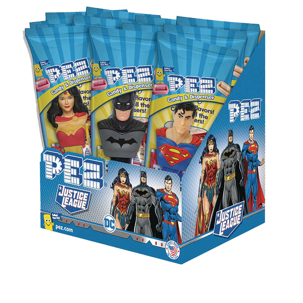From Burdette Beckman Inc. Each 12-pack includes a random mix of Justice League PEZ. The character assortment is random and may not include full sets or all characters shown. Each individually wrapped Justice League PEZ Dispenser includes two PEZ candy refills.