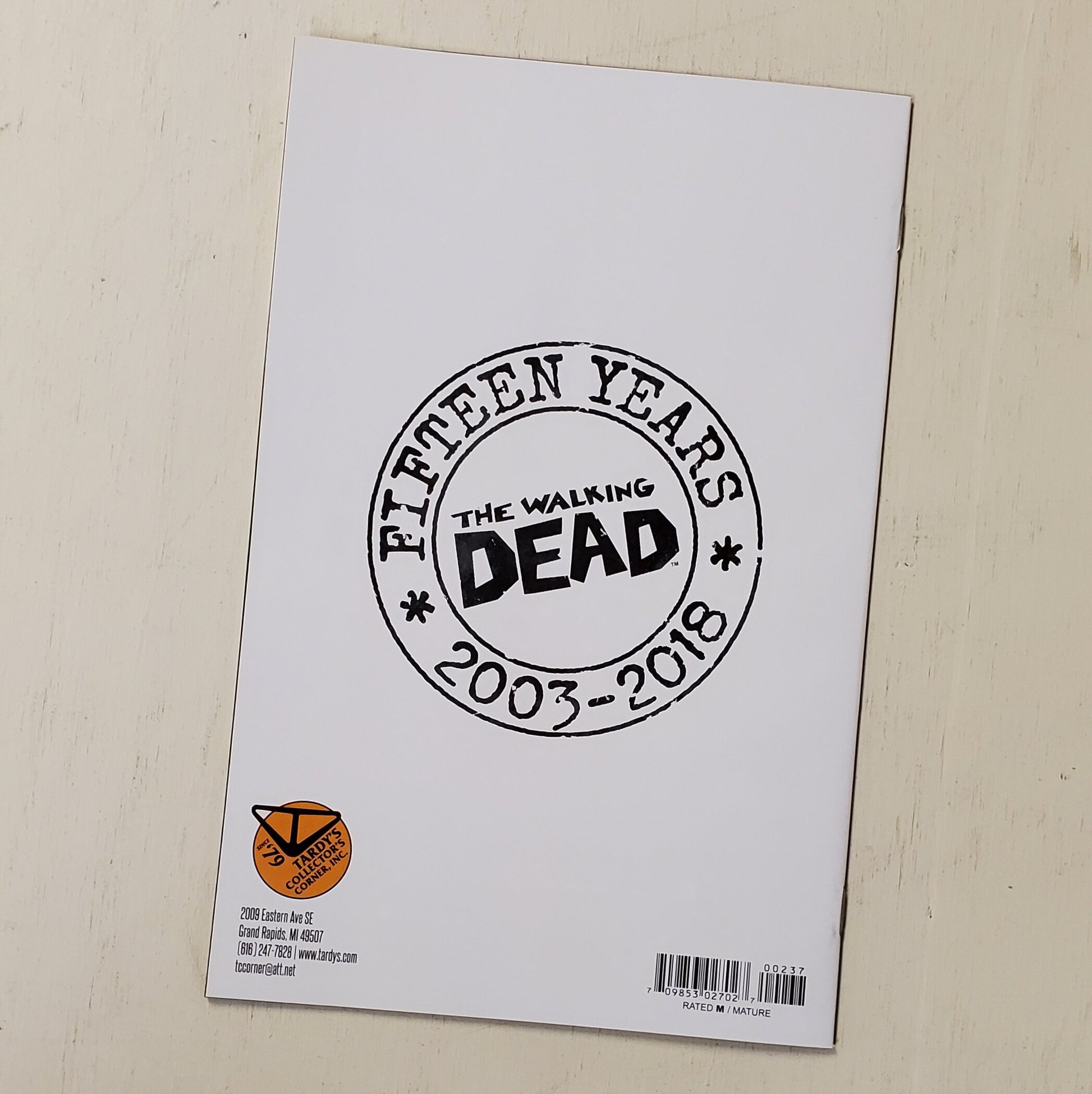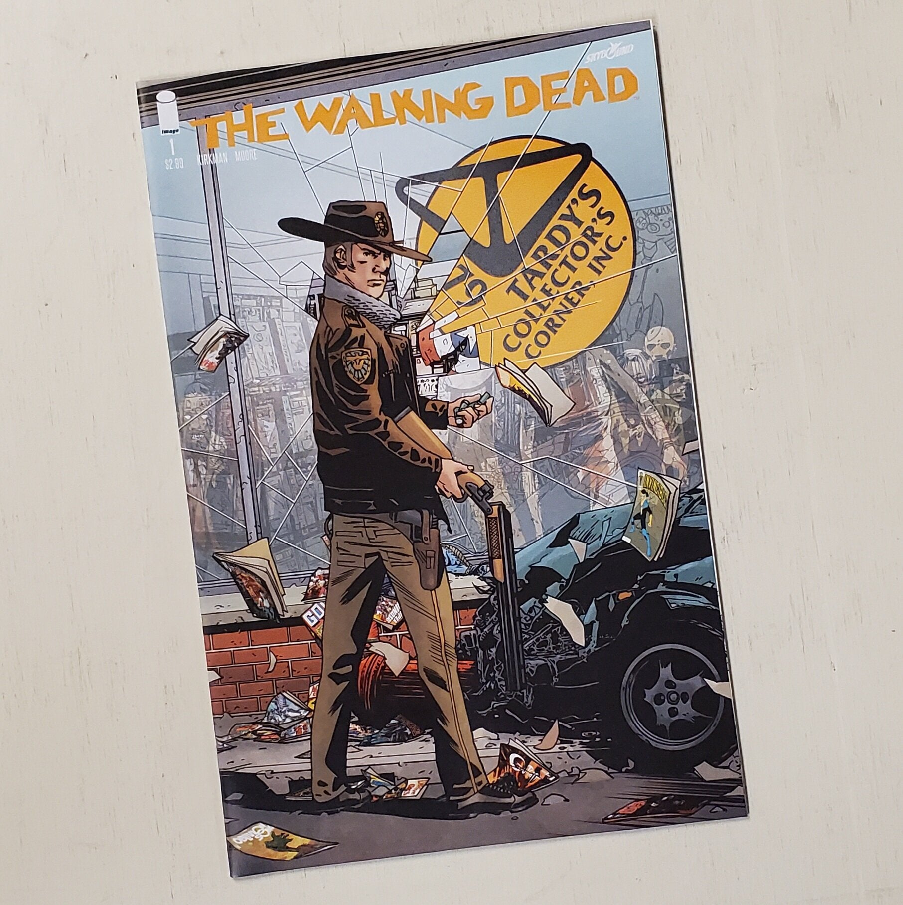 Special edition Walking Dead #1 15th Anniversary Reissue (2018). This variant “retailer’s edition” features Tardy’s!
